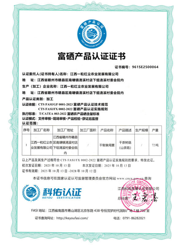 江西一粒紅塵農業發展有限公司是一家總部位于江西省贛縣的現代農業多元型企業,專注于食用菌的研發、種植、深加工貿易、研教培、農文旅等全產業鏈發展。公司秉承“健康綠色、共享、共贏”的核心價值觀,致力于引領鄉村振興之路,旨在成為......